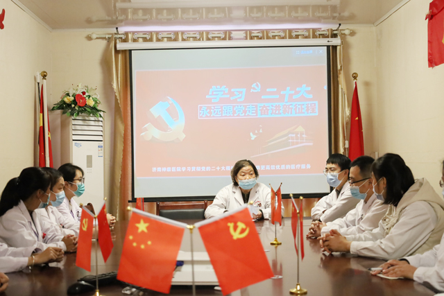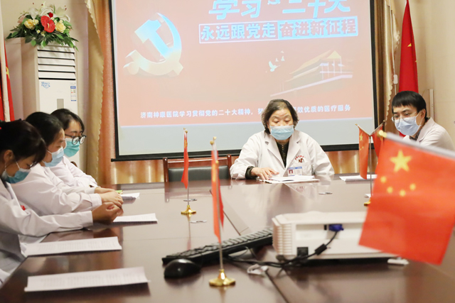 在深入学习党的二十大报告主要内容基础上,与会人员结合岗位工作,交流学习党的二十大报告心得体会。大家一致表示,将认真学习报告精神,学懂弄通悟透,准确把握核心要义,深入学、持久学、刻苦学,要把党的二十大精神贯彻落实到工作全过程、各方面、各环节,把自己摆进去,把职责摆进去、把工作摆进去,以更加坚定的信心决心、更加昂扬的精神状态、更加饱满的干劲热情,奋力谱写新时代济南神康医院高质量发展新篇章。