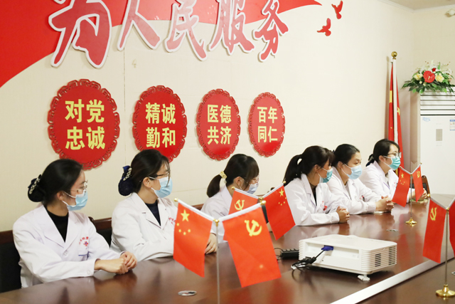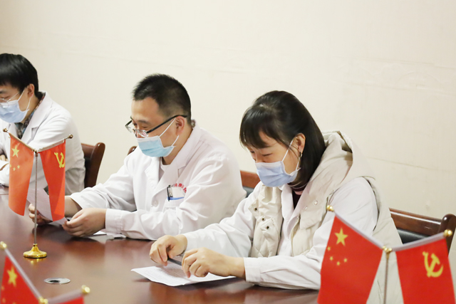 张淑芹院长强调,习近平总书记的报告令人自豪、令人振奋、催人奋进。在报告中,习近平总书记谈到“江山就是人民,人民就是江山”,体现了“人民至上,生命至上”理念,也对作为人民群众“健康守门人”的医务工作者提出了新的更高要求。作为党员,我们要深刻学习领会党的二十大精神,并在岗位践行中充分发挥党员先锋模范作用,我们要始终把广大人民群众的健康安全摆在首要位置,用实际行动诠释“敬佑生命、救死扶伤、甘于奉献、大爱无疆”的医者精神,为维护人民健康保驾护航。