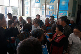 患者家属在向医院工作人员索要医院宣传册